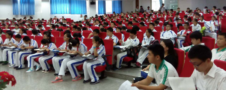 2015年9月6日上午,bg真人娱乐初中、高中学生干部工作会分别于B106、B208教室举行,校团委书记刘露、学生发展中心教师王敏、王星玮和学生会指导教师岑逸飞出席了本次会议,初高中共计400余名学生干部参加。