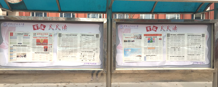 3月19日,bg真人娱乐报刊栏正式设立。报刊栏位于教学楼C座楼对面,毗邻学校操场和体育场馆。本着“有报天天读”的核心思想,报刊栏将每日为广大师生提供最新的资讯和新闻;包含人民日报、光明日报、中国青年报、新华每日电讯等多家国内主流报业。报纸内容涵盖政治时事、社会热点、时事评论等多个方面。