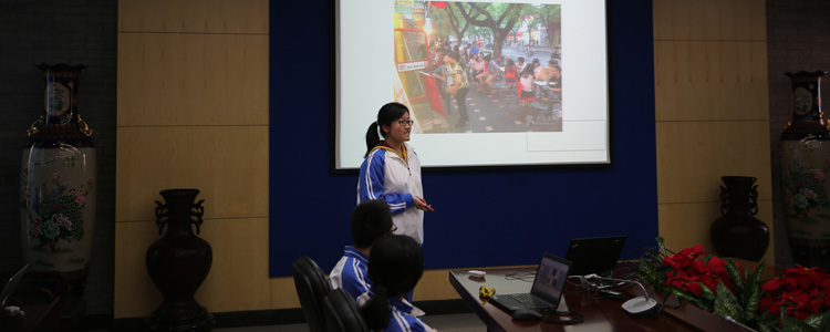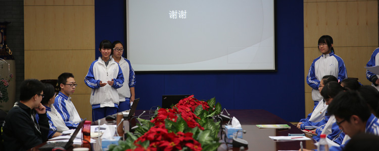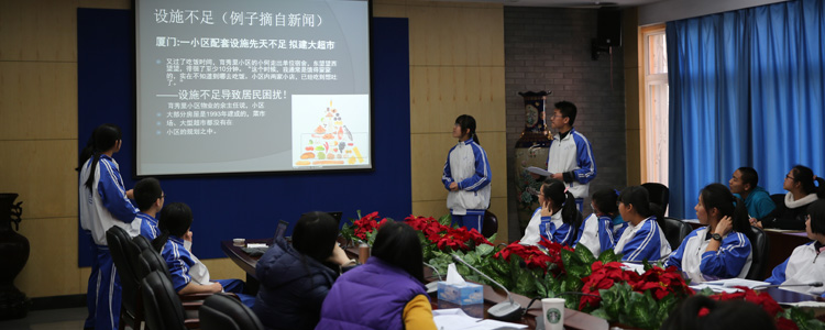 答辩会分为两个环节。第一环节是现场答辩,12月25下午在B102举行。6个项目组以 PPT 演示的形式介绍了选题的意义、研究的主要内容、研究计划、研究手段等几个方面展开论述,6个项目分别是《小区配套设施设计的合理性分析及更改方案研究》、《校园文化活动的评估与优化》、《北京传统饮食的发展与变迁》、《中学生社区服务学时的现状与改进》、《小班制教学的现状及实施研究》、《bg真人娱乐学生食堂探究》,评委老师根据每组的自述和立项报告,针对课题进行过程中的一些具体细节和可能出现的问题及解决方案进行提问。本期的6个项目贴近中学生的生活,关注社会热点,发现思考实际问题,具有很强的现实性和研究意义。