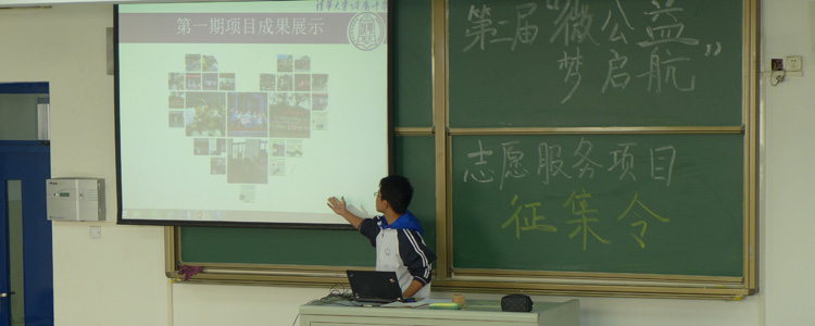 启动仪式上,孙啸天同学首先回顾了第一届“微公益 梦起航”志愿服务项目的基本情况,介绍了15个公益项目的基本情况。随后,第一届优秀项目四川南部县支教团代表张济远、李清扬讲述了自己的公益历程。他们带领大家通过视频回顾了丰富精彩的支教生活,介绍了四川南部县支教从选拔到活动开展的整个情况,分享了自己的公益体验。最后,校学生会主席丛蓉同学发布了第二届“微公益 梦起航”志愿服务项目的征集令。