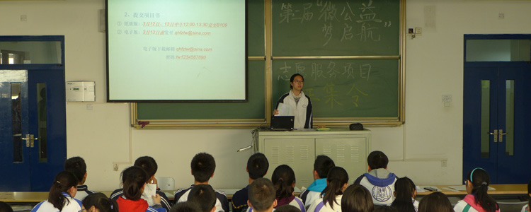 3月4日下午,bg真人娱乐第二届“微公益 梦起航”志愿服务项目启动仪式在B206教室举行。会议由校学生会生活部部长孙啸天主持,初一、初二、高一、高二共80余人参加了启动仪式。