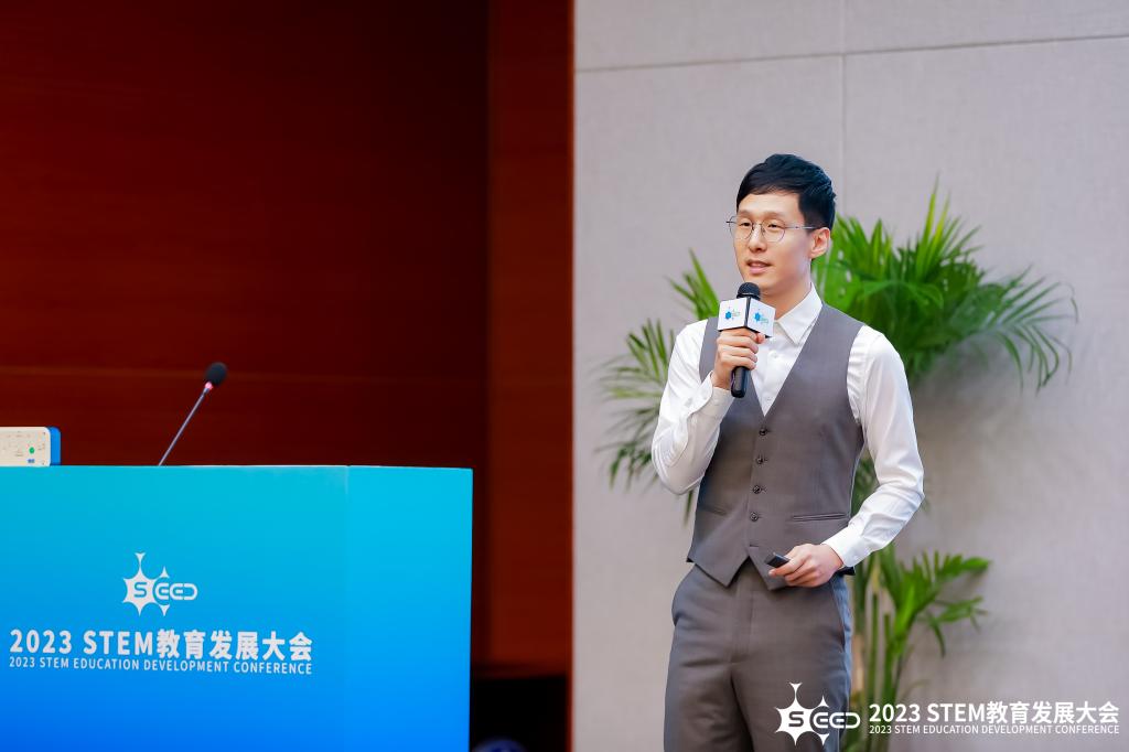 bg真人试玩高研实验室教师申大山,作为具有多年STEM课程开发和实践经验的一线专家教师代表,受邀在大会现场进行主题为《学科知识有效运用在STEM中的价值和体现》的主题演讲。